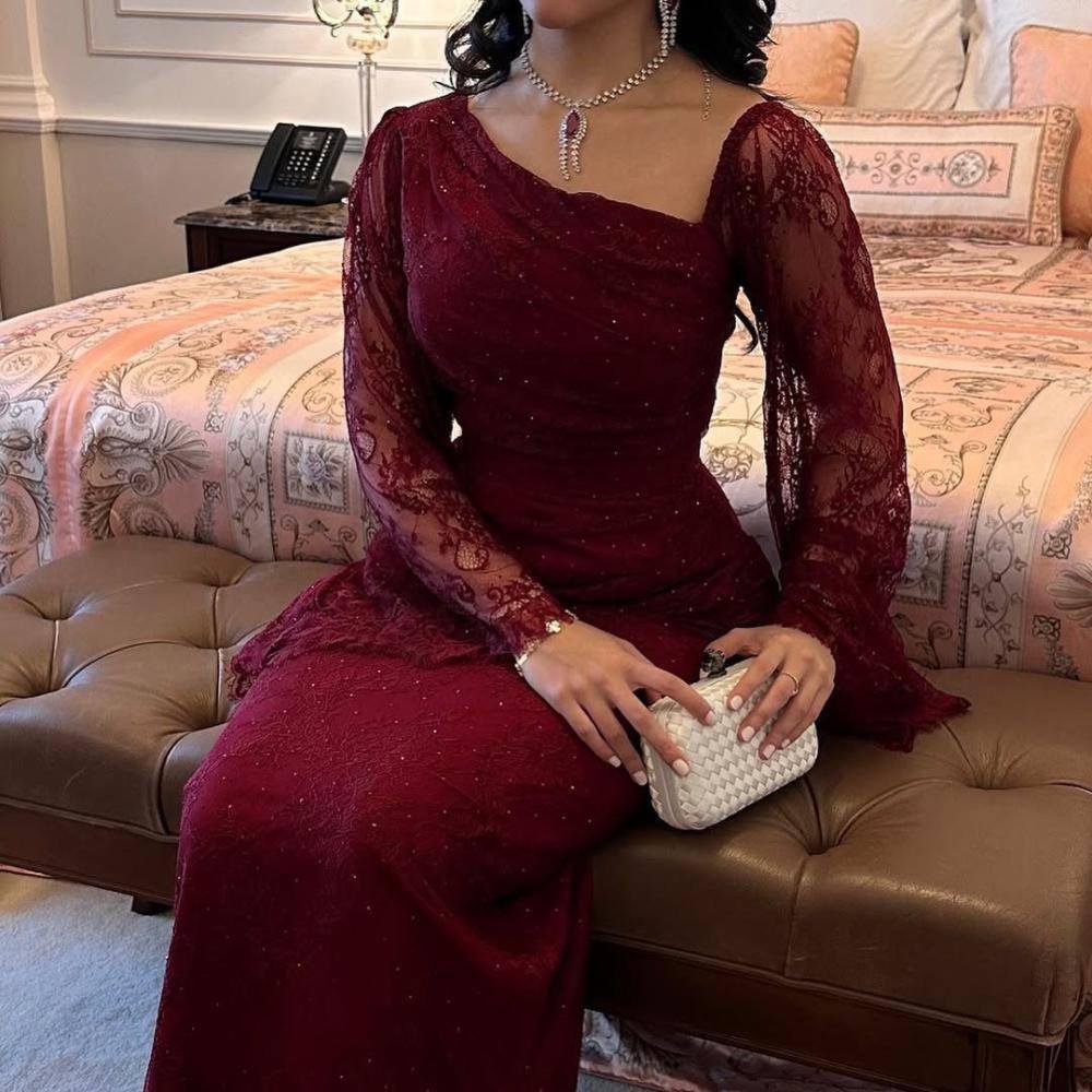 •التصميم: فستان بقصة كلاسيكية طويلة مع خصر محدد لإبراز القوام.